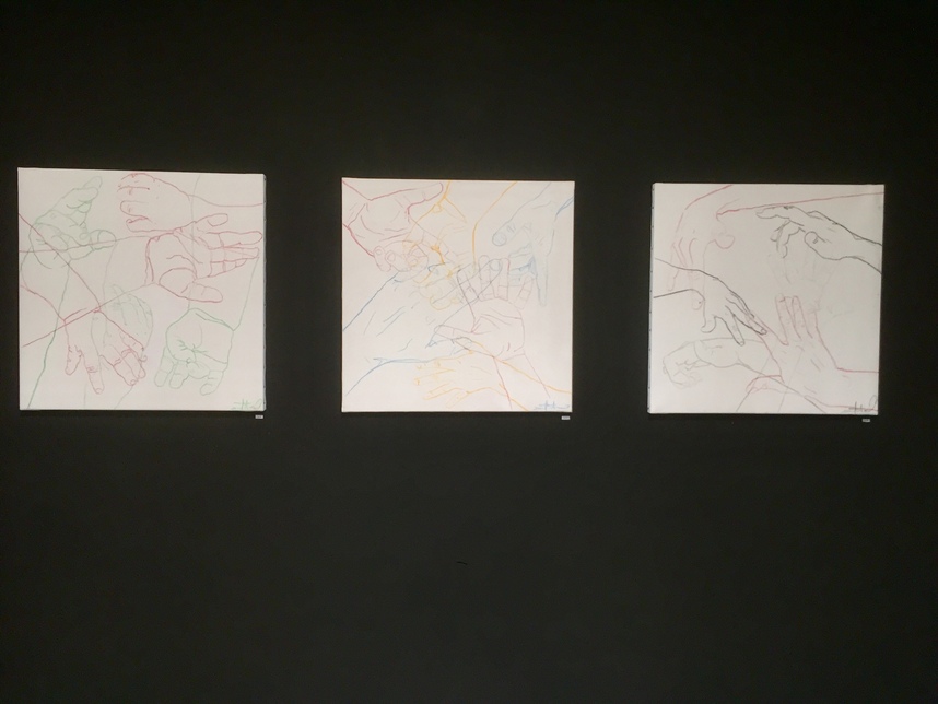 A travers ce projet Don Mateo, artiste lyonnais, propose de questionner la figure à travers la main. La main qui caresse, qui cache, qui montre ou encore la main qui porte… Mais plus généralement c'est la peinture qui est interrogée. La fragilité de l'être s'impose par la ligne, le geste pour osciller entre la peinture et la sculpture. C'est en artisan de l'art que Don Mateo creuse son sillon obstiné pour créer l'émotion, ce souffle de poésie qui nous murmure à l'oreille que...